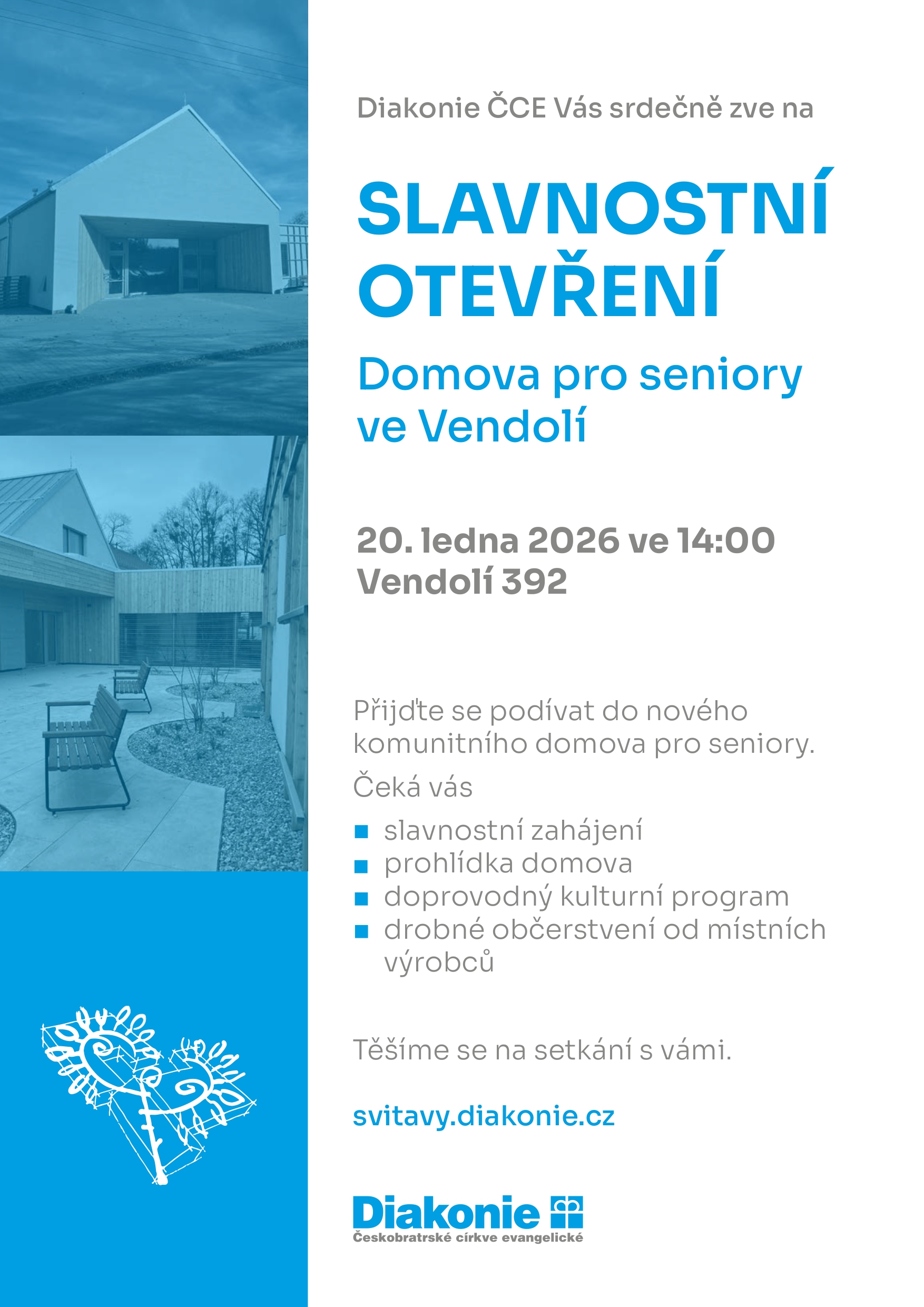 Diakonie ČCE srdečně zve na slavnostní otevření Domova pro seniory ve Vendolí (Vendolí 392)