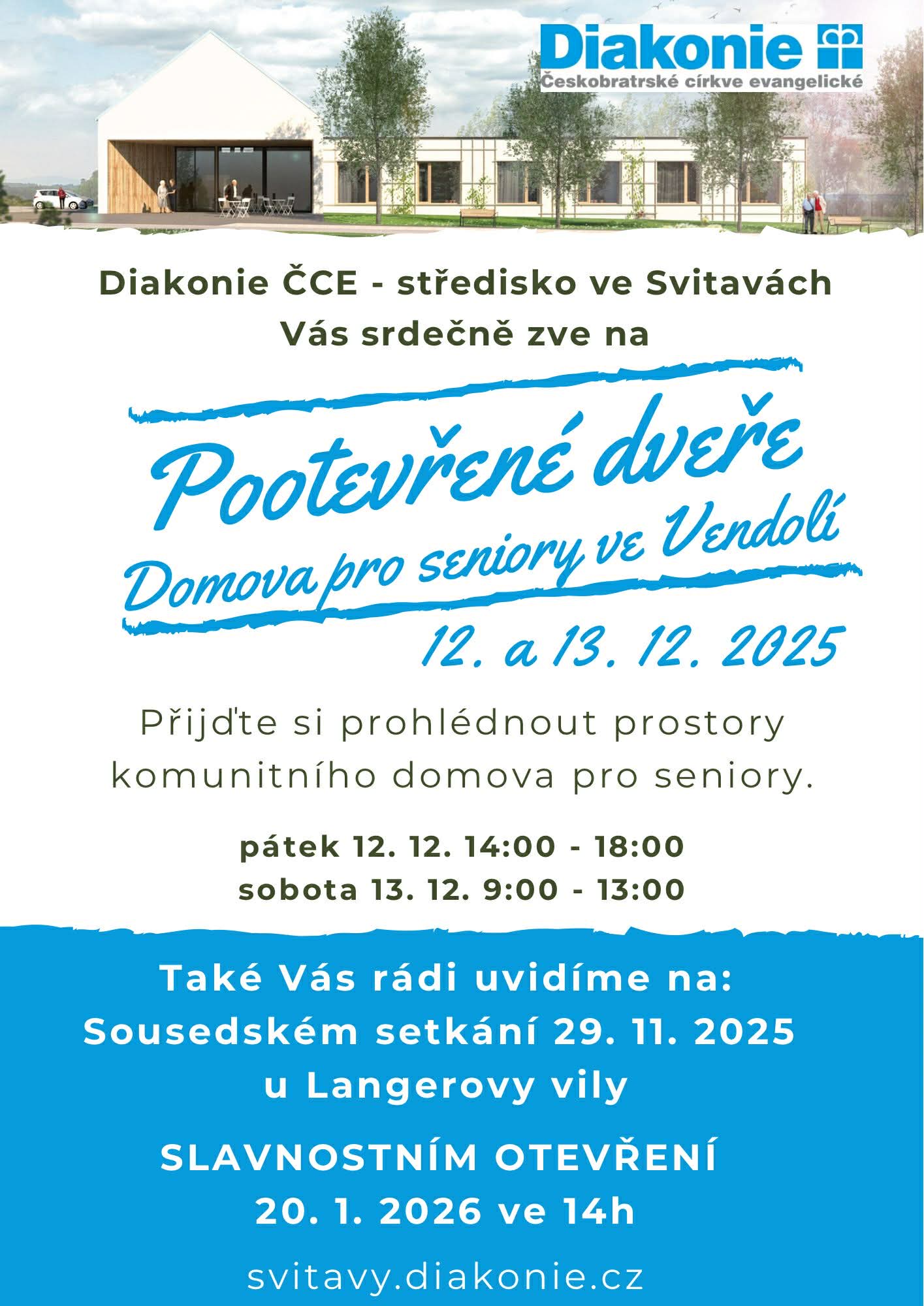 Diakonie ČCE srdečně zve na slavnostní otevření Domova pro seniory ve Vendolí (Vendolí 392)